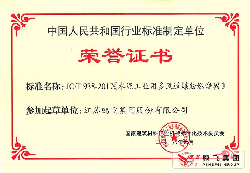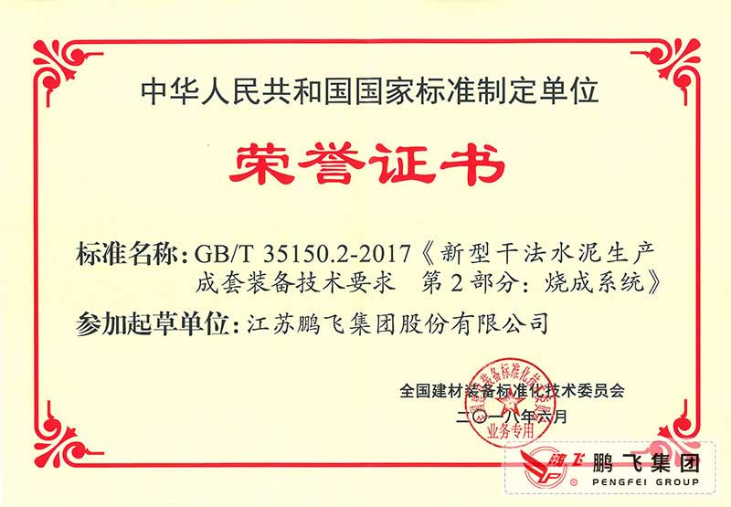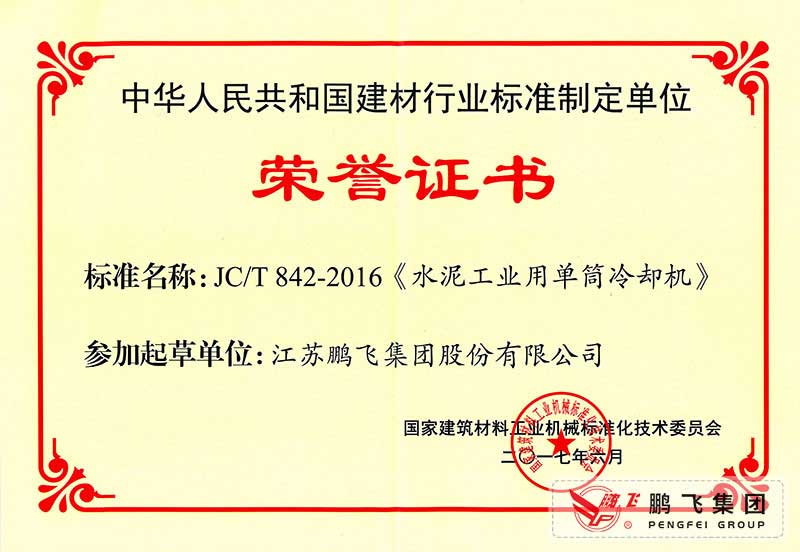 (2017年6月21)回轉(zhuǎn)窯國(guó)標(biāo)起草證書