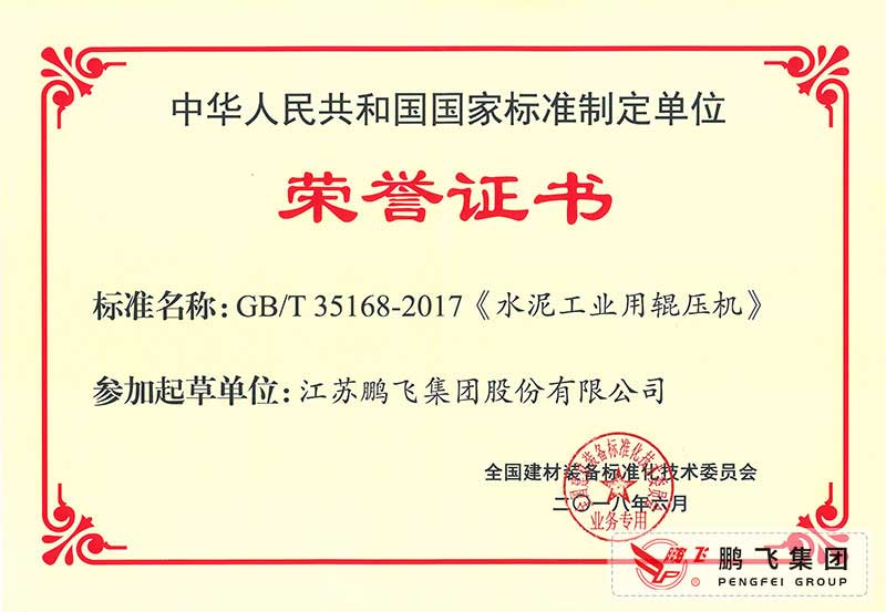 (2012年8月)管磨裝備國(guó)家標(biāo)準(zhǔn)起草單位之一