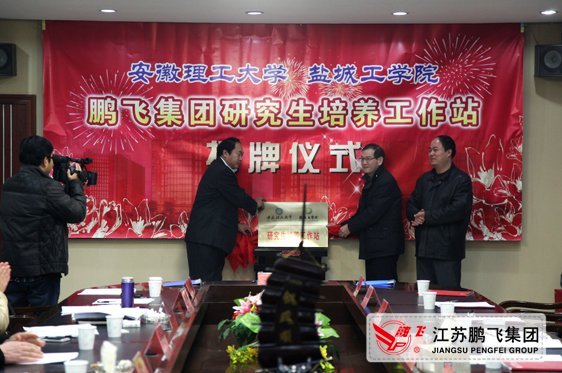 12月10日,由鵬飛集團(tuán)聯(lián)合安徽理工大學(xué)、鹽城工學(xué)院創(chuàng)建的研究生培養(yǎng)工作站在江蘇鵬飛集團(tuán)公司舉行揭牌儀式,江蘇鵬飛集團(tuán)副總經(jīng)理周延標(biāo)介紹了與安徽理工大學(xué)、鹽城工學(xué)校產(chǎn)學(xué)研合作情況,鹽城工學(xué)院邵榮副校長、安徽理工大學(xué)王其東副校長對研究生培養(yǎng)工作站的成立提出新的工作要求,大公鎮(zhèn)政府、海安縣科技局領(lǐng)導(dǎo)做了重要講話,鹽城工學(xué)院邵榮副校長、王其東副校長、鵬飛集團(tuán)副總經(jīng)理周延標(biāo)在三方合作協(xié)議上簽字,三方共同為鵬飛集團(tuán)研究生工作站揭牌,會議結(jié)束后,大家參觀了江蘇鵬飛節(jié)能環(huán)保產(chǎn)業(yè)技術(shù)研究院和鵬飛集團(tuán)全面建成投產(chǎn)后的北廠新區(qū)。