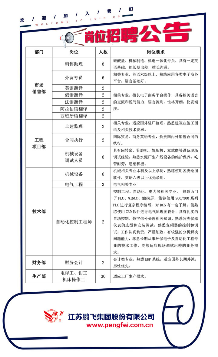 公司因發(fā)展需要,面向社會招聘以下職位人員,請直接電話聯系或者到公司面試洽談。