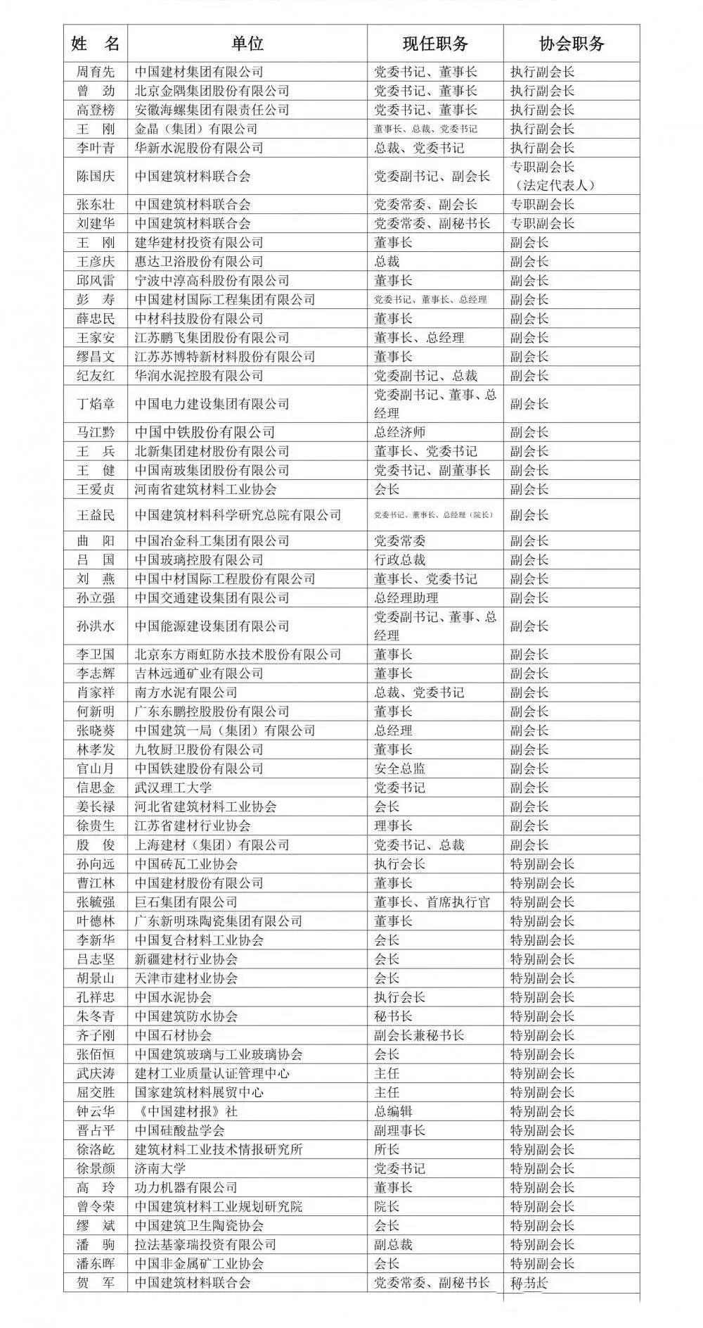 中國建筑材料聯(lián)合會第六屆理事會負責(zé)人名單