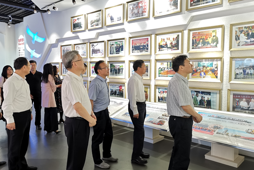 江蘇鵬飛集團(tuán)股份有限公司董事長(zhǎng)王家安帶領(lǐng)調(diào)研組一行,參觀了生產(chǎn)車間和展廳,向調(diào)研組介紹企業(yè)國(guó)內(nèi)外發(fā)展定位及在“一帶一路”沿線國(guó)家落地項(xiàng)目的概況,向調(diào)研組介紹企業(yè)現(xiàn)階段發(fā)展?fàn)顩r、海外項(xiàng)目運(yùn)行情況及企業(yè)未來(lái)發(fā)展愿景。
