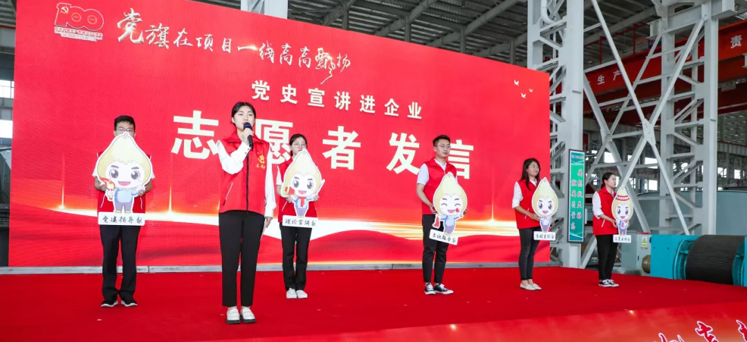 “將企業(yè)生產(chǎn)經(jīng)營與項目建設(shè)融入黨史學(xué)習(xí)教育,以黨建為引領(lǐng),讓支部建在項目上、黨旗飄在陣地上、黨員沖在火線上、關(guān)愛工人在心上,切實讓黨旗在項目一線高高飄揚……”6月16日下午,鵬飛資源綜合利用成套裝備生產(chǎn)項目“黨旗在項目一線高高飄揚”活動舉行,這也是海安市推動黨史學(xué)習(xí)教育“走深”“走心”“走實”,黨員干部在項目一線“建強(qiáng)組織筑堡壘、做優(yōu)服務(wù)強(qiáng)項目、為民辦事解難題”的真實寫照。