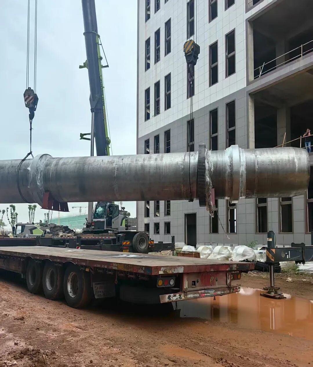 近日,中新開維綠色食品產(chǎn)業(yè)園項目迎來重大進展—隨著三臺總重達108噸的“巨無霸”回轉(zhuǎn)窯炒菜鍋在兩臺吊車精準(zhǔn)牽引下緩緩上樓就位,中新開維綠色食品產(chǎn)業(yè)園15