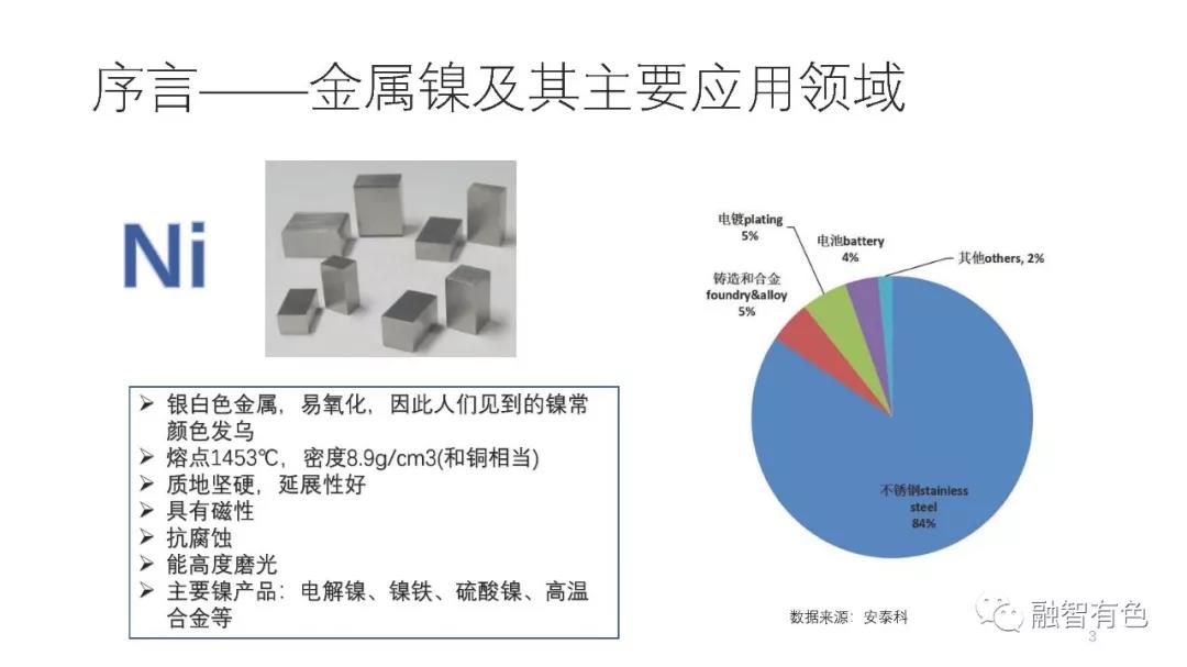 按:金屬鎳是一種性質(zhì)優(yōu)異的基礎(chǔ)金屬,在不銹鋼、電鍍、鑄造及合金、動(dòng)力電池等領(lǐng)域廣泛。特別是近年來由于新能源汽車長續(xù)航里程的要求,使得高鎳三元?jiǎng)恿﹄姵厥艿酱蠹业臉O力熱捧,由此又帶動(dòng)了鎳在新能源領(lǐng)域的高速增長,為鎳的應(yīng)用再次錦上添花。