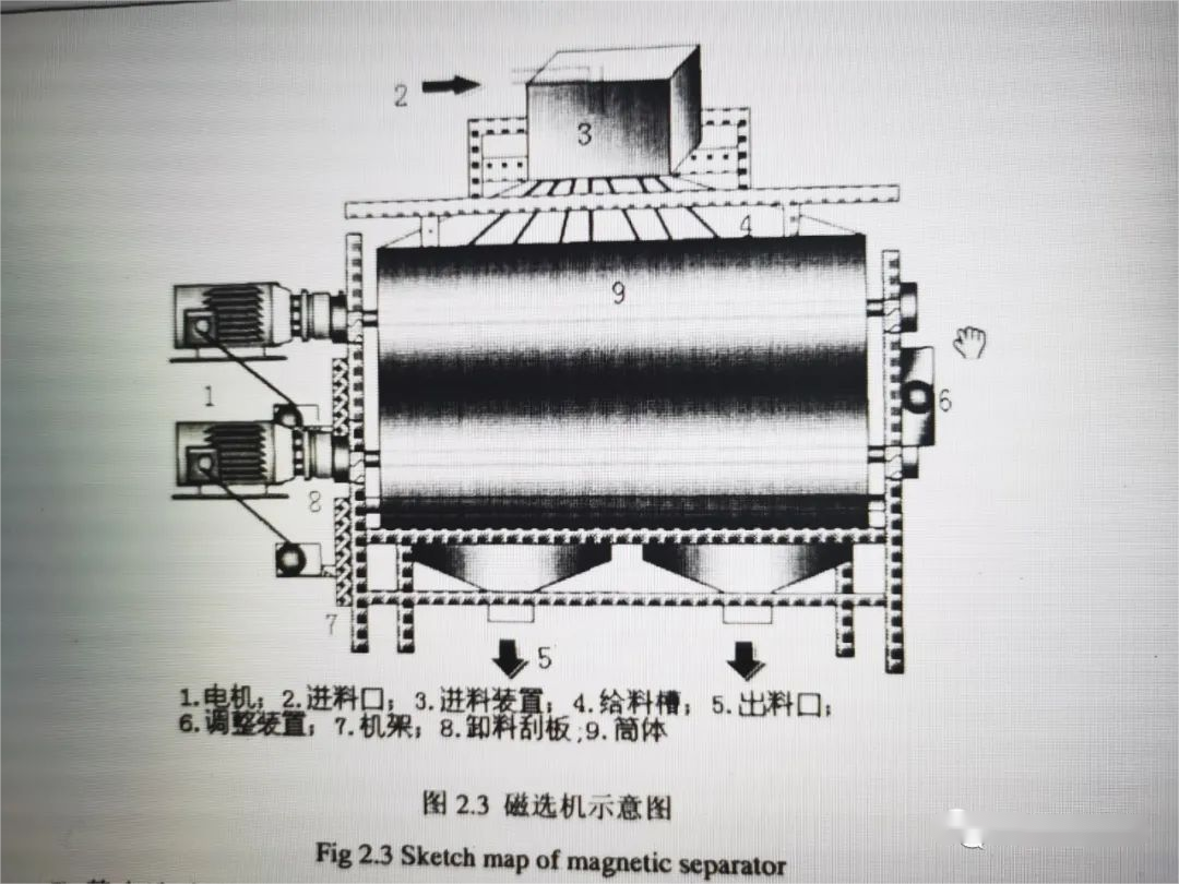 炙熱的菱鐵礦如果接觸氧氣很容易轉(zhuǎn)化為r-Fe2O3 ,甚至弱性的a-Fe2O3 ,導(dǎo)致弱磁選困難,為了防止焙燒礦在出窯時(shí)弱磁性赤鐵礦,故焙燒礦出窯方案設(shè)計(jì)為水封拉鏈水冷,出水溫度一般為70°C 左右。然后進(jìn)料倉(cāng),再經(jīng)過(guò)磨碎分級(jí)進(jìn)行磁選,選出精礦粉。