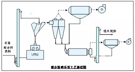 此工藝運(yùn)用于VPM立磨功率與球磨機(jī)功率比值大于0.5的場(chǎng)合,該系統(tǒng)主要優(yōu)點(diǎn)是系統(tǒng)產(chǎn)量高(增產(chǎn)100%以上),單位電耗低。