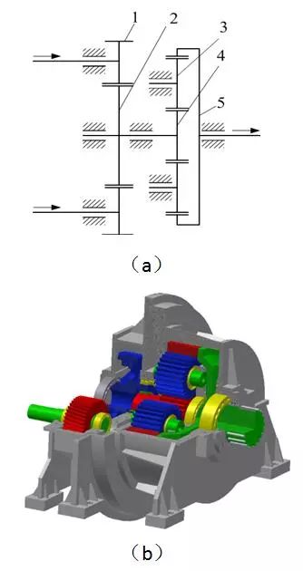 1.2 雙電動(dòng)機(jī)多點(diǎn)嚙合齒輪傳動(dòng)