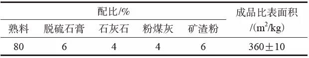 表2 P·O42.5水泥物料配比及細(xì)度指標(biāo)