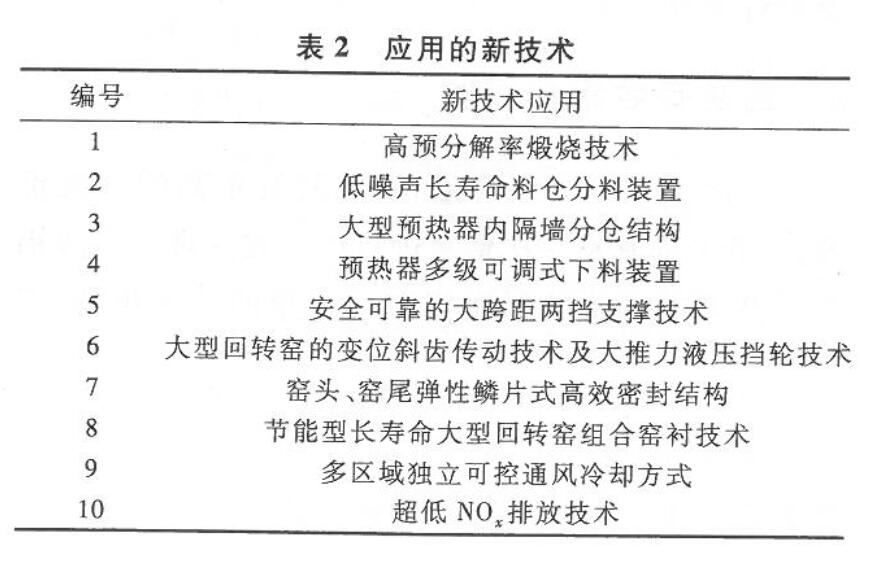 通過多年的自主研發(fā)和實踐經(jīng)驗積累,我公司在本工程上應(yīng)用了大量的回轉(zhuǎn)窯新技術(shù),確?;剞D(zhuǎn)窯系統(tǒng)的節(jié)能、環(huán)保、高效。具體應(yīng)用的新技術(shù)列于表2。